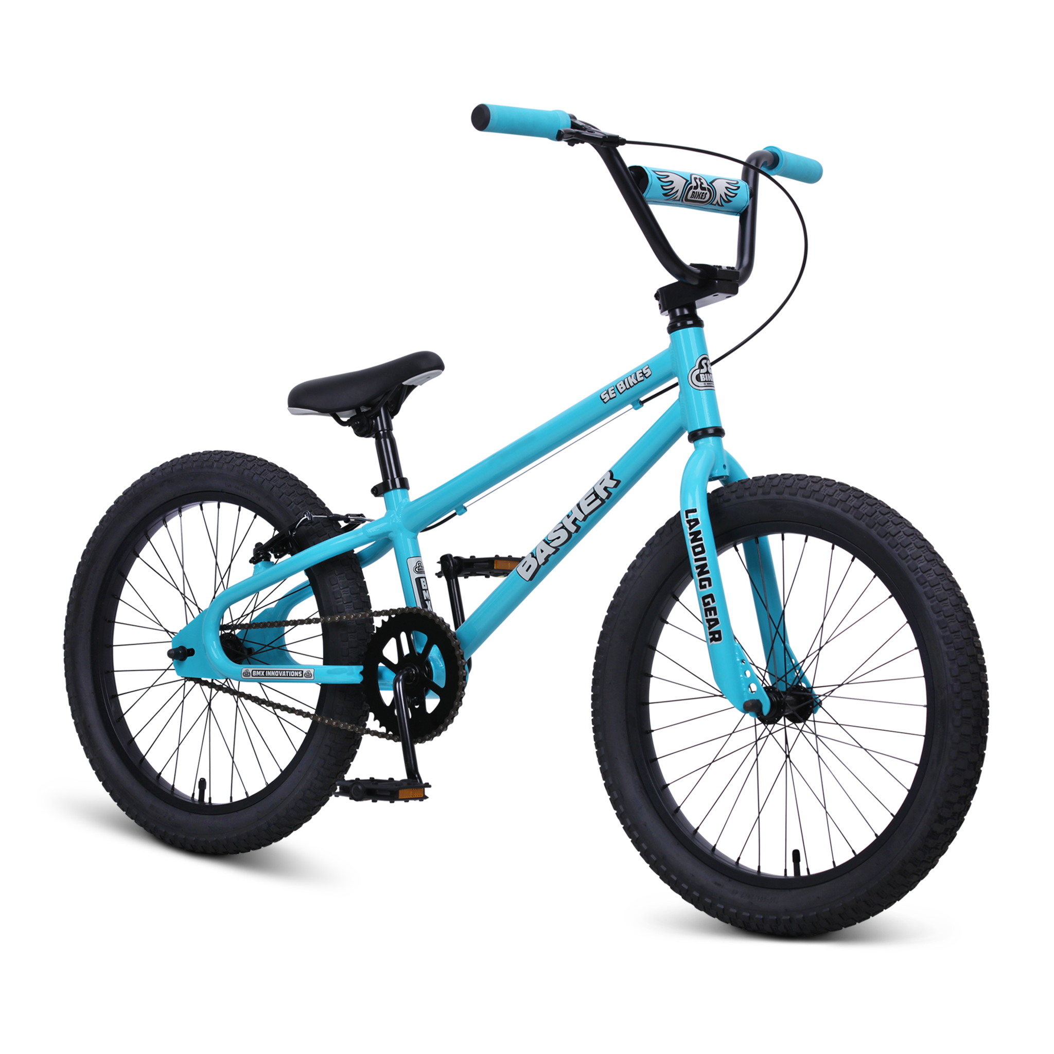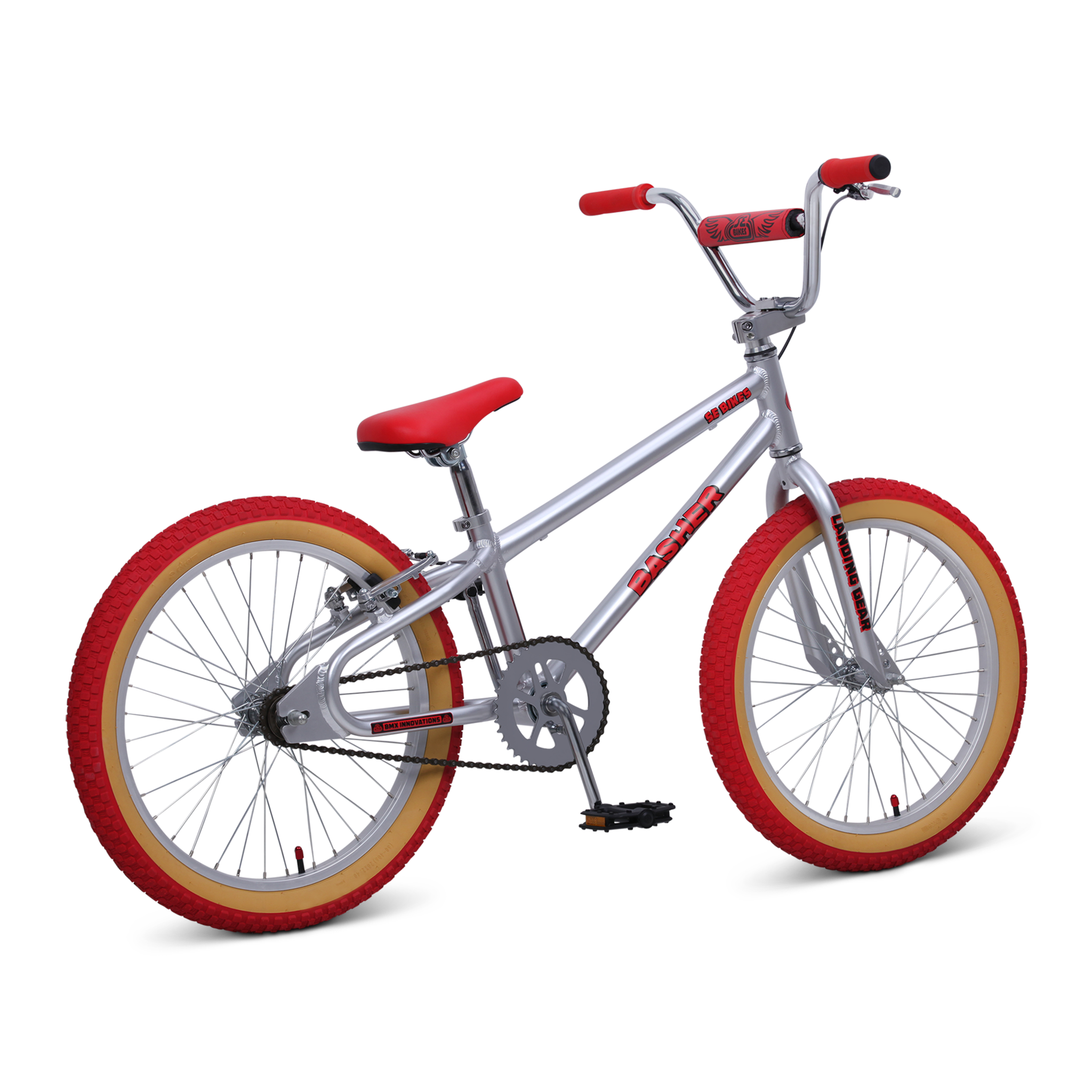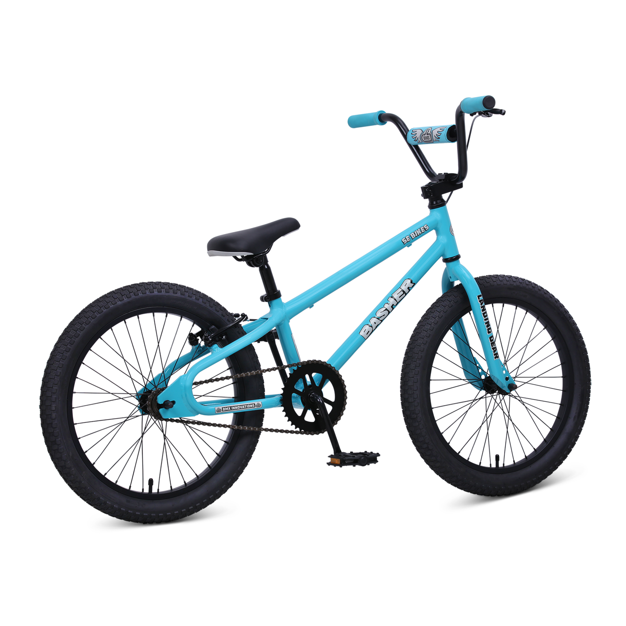The Basher bike was first introduced to the SE line during the first BMX boom and the brands inception. This legendary bike is making its return this year in multiple new sizes built specifically for kids. The new 20" Bashers stylish and lightweight frame is built with 6061 aluminum and features a low standover, legendary Looptail rear end, and retro dropouts. The combination of a rear hand brake and a freewheel rear hub will help to build confidence and precision. Kids who are new to BMX will absolutely love the new Basher.