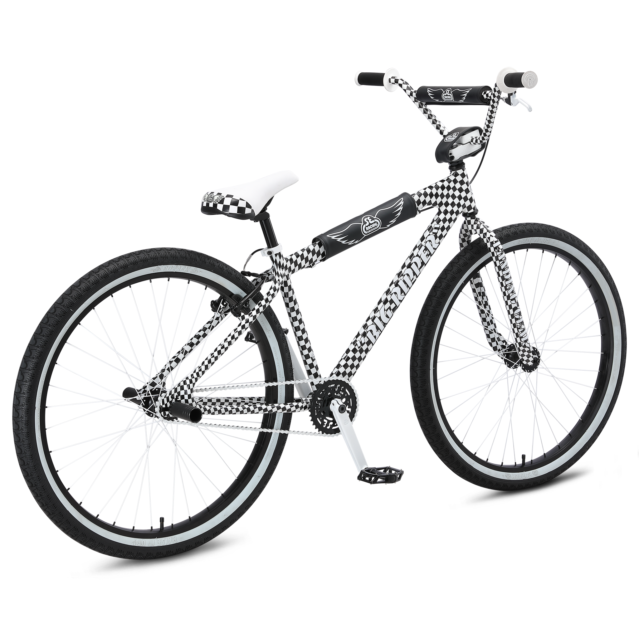 The PK Ripper was the raddest, baddest, and most famous bike during the first BMX boom in the early 80s. Fast forward 40 years and now its the 29" Big Ripper that's on top. This Big Ripper frame comes equipped with an American bottom bracket and an OG seatstay wishbone plate just like the original PK Ripper. The 29" x 2.4" SE Bozack tires are just wide enough to give stability and cushion, but also roll extremely fast. Whether you are an old school BMX rider reliving your youth or a new school SE bike life rider raising it up, the Big Ripper is for you.