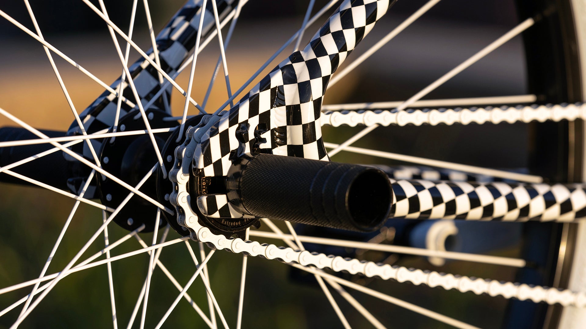 • Retro 6061 aluminum Big Ripper frame with Floval tubing, looptail rear end, American bottom bracket, and classic PK Ripper style wishbone plate