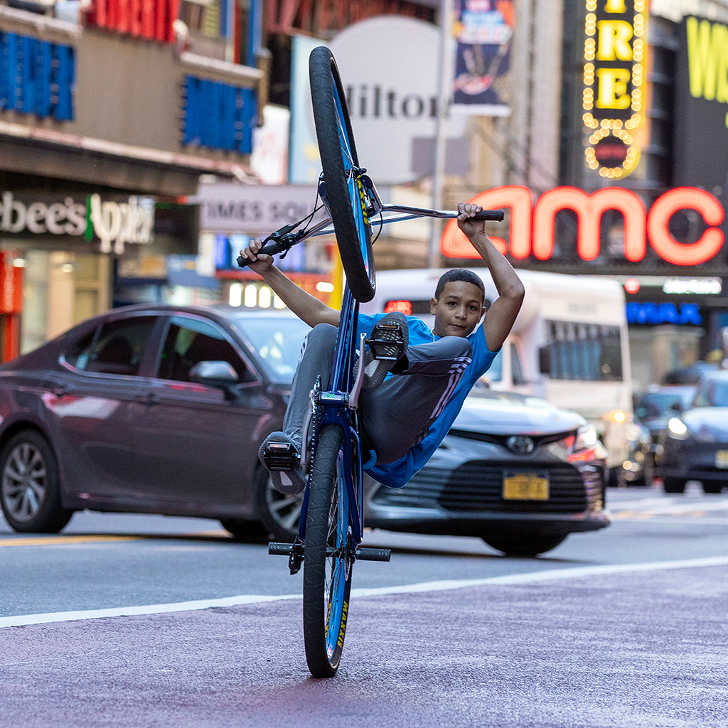 My favorite place to ride is through Times Square at night, because it's a lot of lighting and mad people.