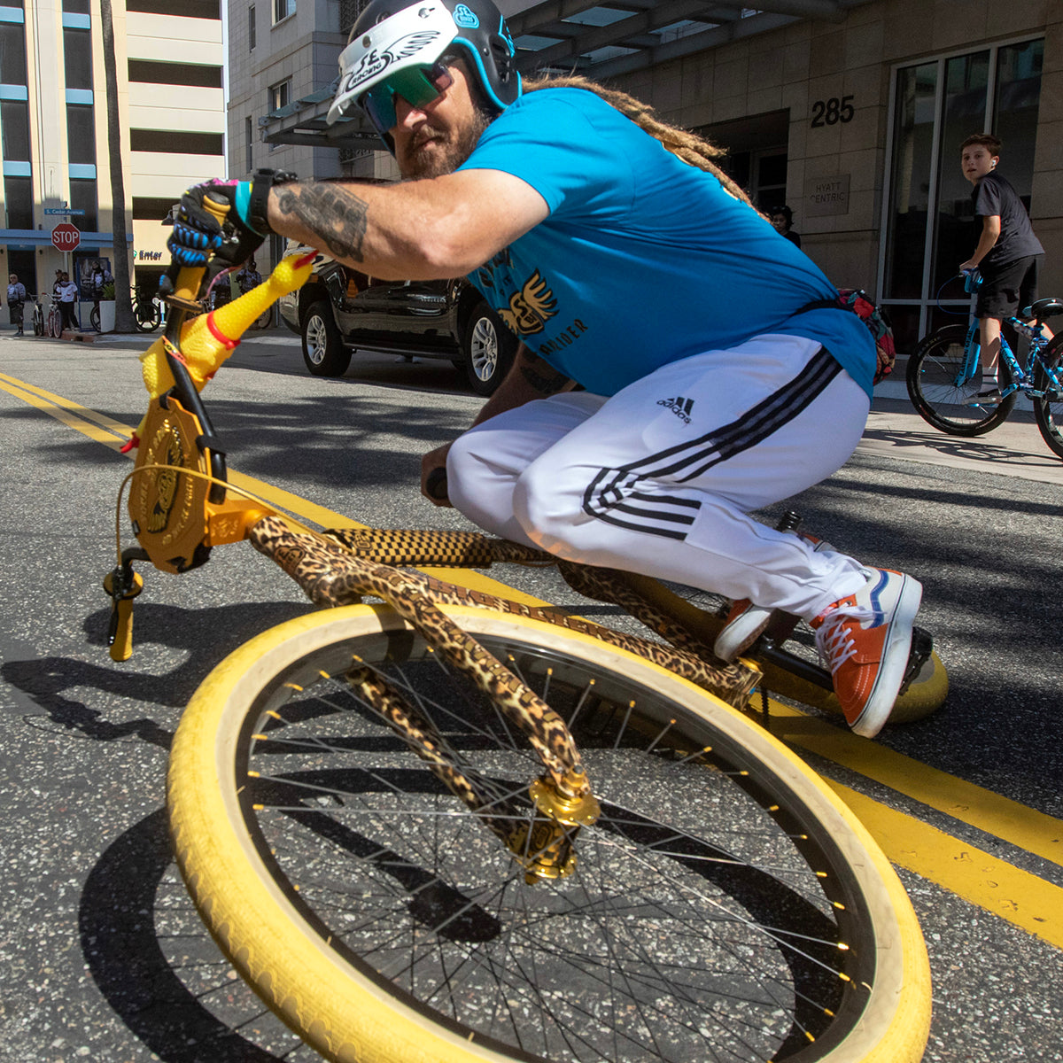 I’d have to say that my favorite part of bike life is watching people enjoying themselves. It’s got to be the kids & elders getting rad that makes me smile the biggest. Learning and teaching others how to get the most satisfaction out of what they’re doing on bikes.