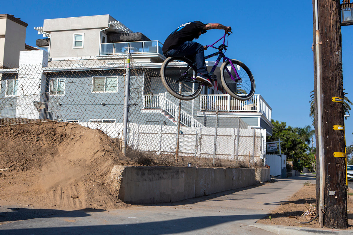 Jakob Santos is constantly pushing the limits of big bike BMX. With his extensive riding background, creative eye, and go-big style, he's taking his Big Flyer to new heights every time he rides! Photos by @roadkill_flickz and @marklosey