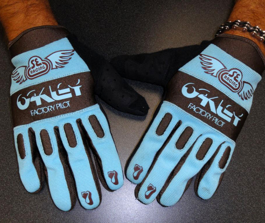 The Oakley x SE gloves in black and blue in 2010.