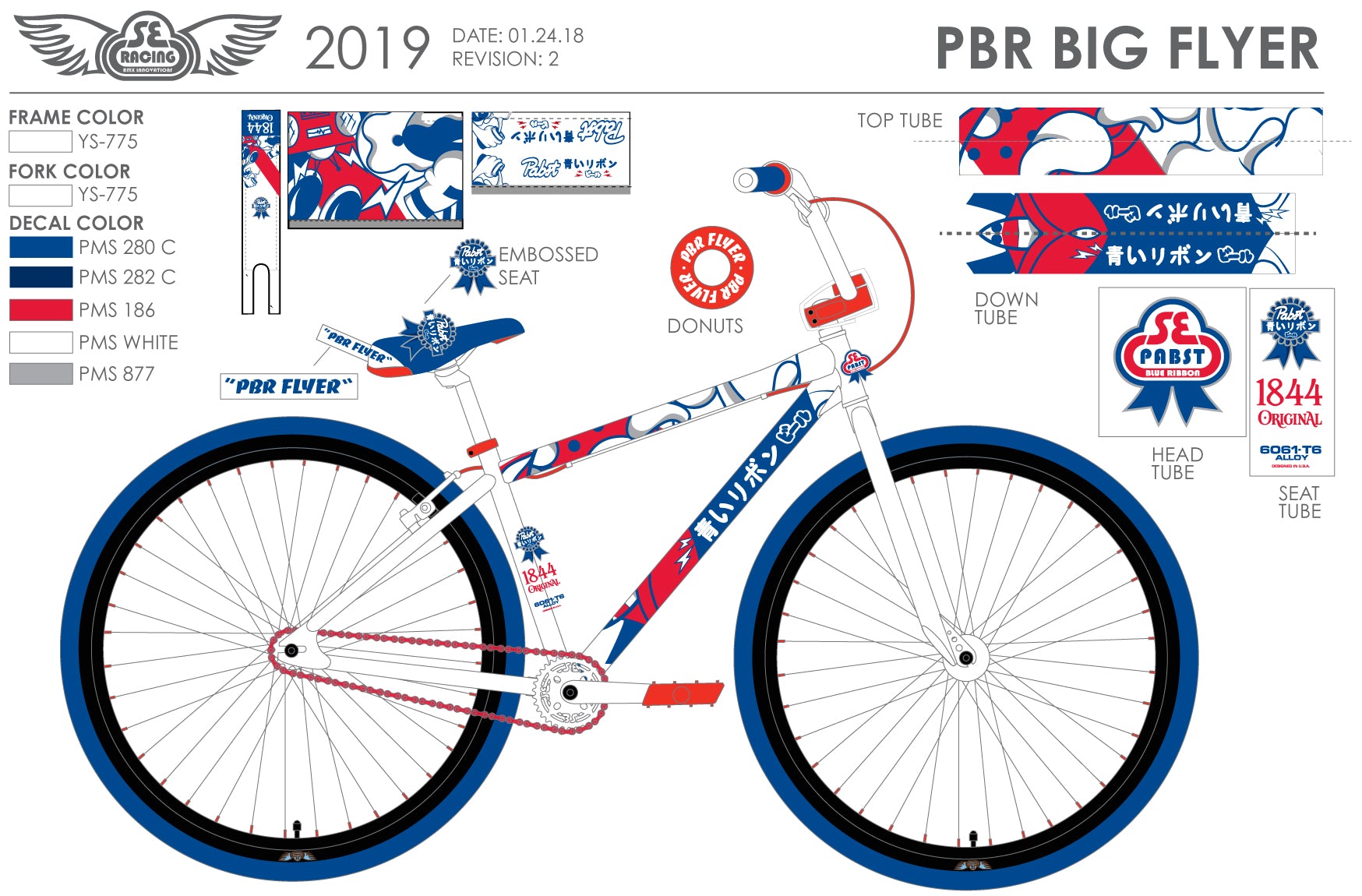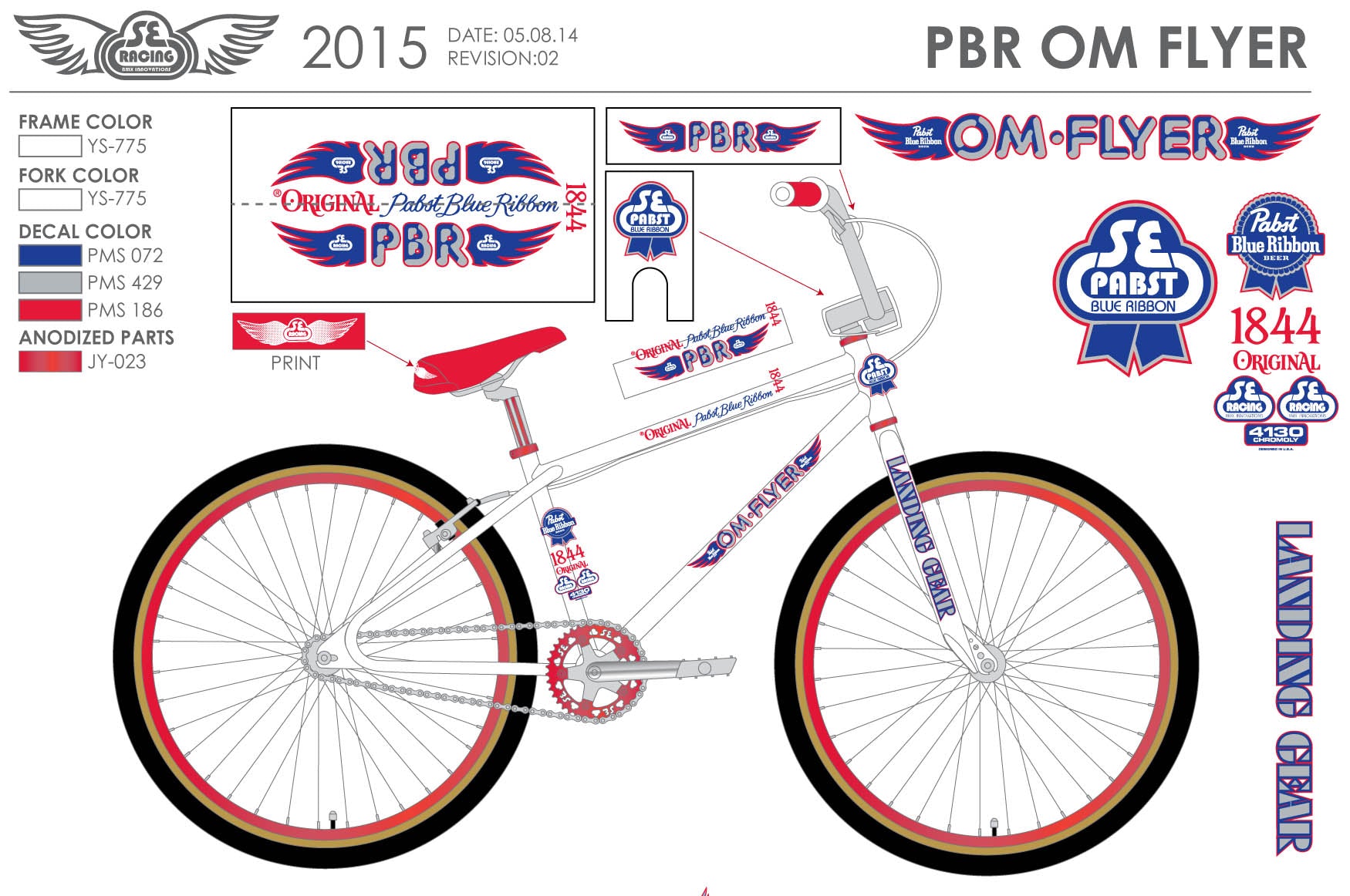 Below is a photo that the factory sent to us for review during the production process. Scroll over to see the design file for the PBR OM Flyer. You can spot this bike from a mile away!