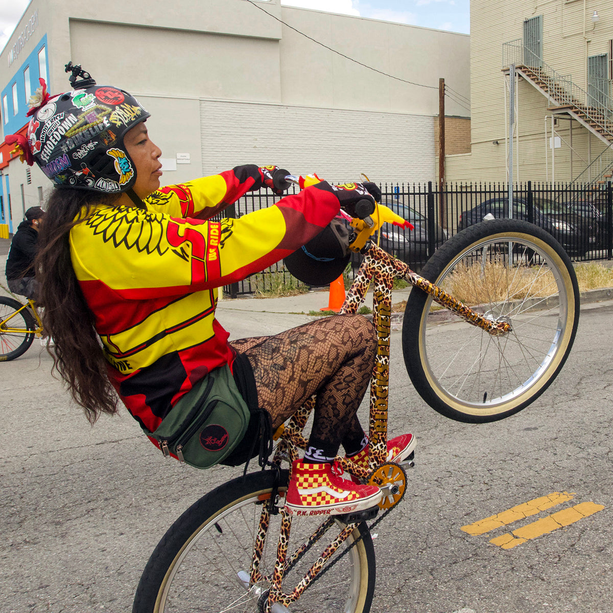 Some advice I’d give to someone just getting into bike life is to be safe. I love inviting people out to ride, but letting them know how to ride safe is important to me. Have fun riding and consider a helmet, gloves, and bike lights.