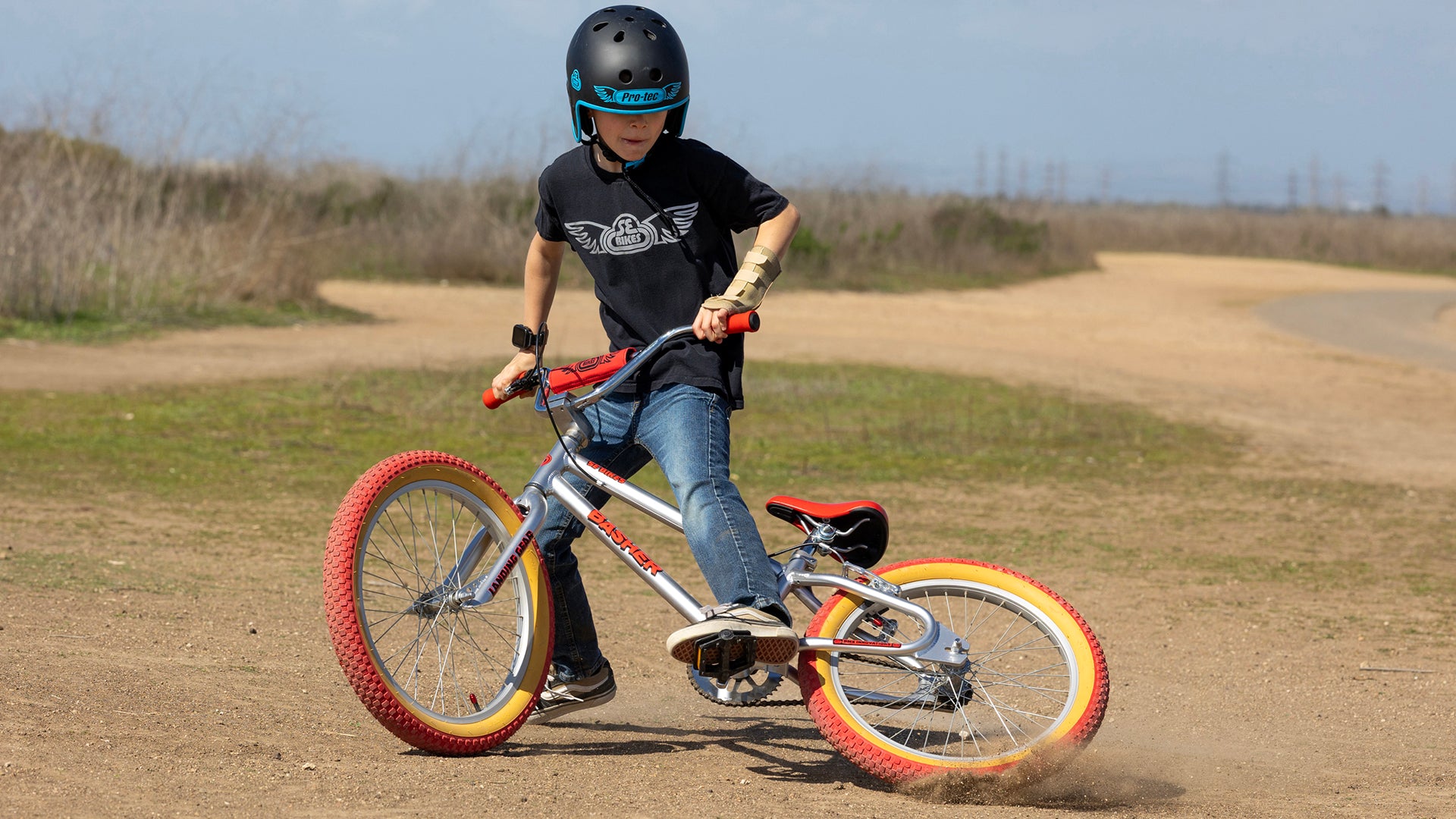 The Basher bike was first introduced to the SE line during the first BMX boom and the brands inception. This legendary bike is making its return this year in multiple new sizes built specifically for kids. The new 20" Bashers stylish and lightweight frame is built with 6061 aluminum and features a low standover, legendary Looptail rear end, and retro dropouts. The combination of a rear hand brake and a freewheel rear hub will help to build confidence and precision. Kids who are new to BMX will absolutely love the new Basher.
