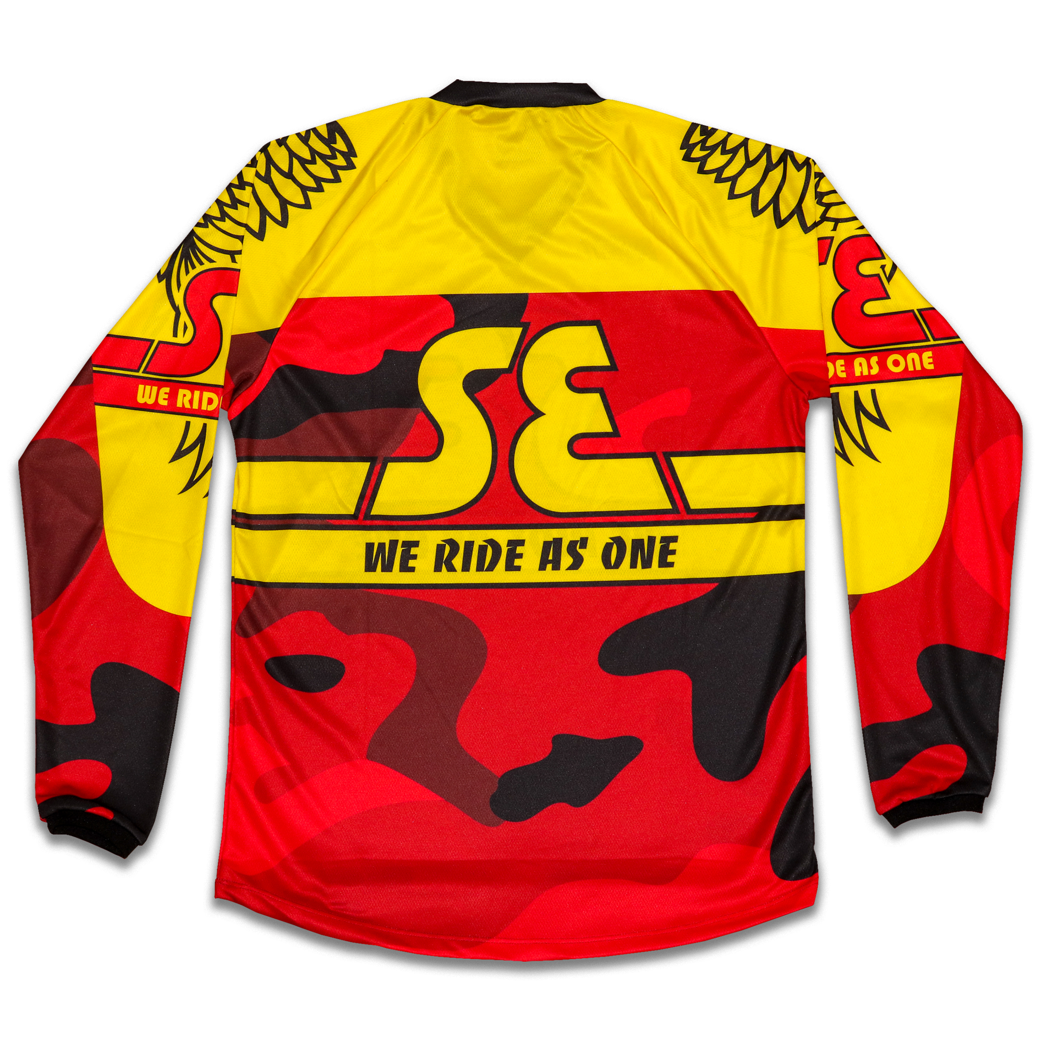 The new SE Bike Life jersey resonates with SEs 45 year history with the OG red & yellow camo colorway. This jersey is made in the USA by Hot Shoppe Designs & features a fresh camo design mixed in with the SE logo. You'll surely stand out from the crowd when wearing this jersey. And as always, We Ride as One!