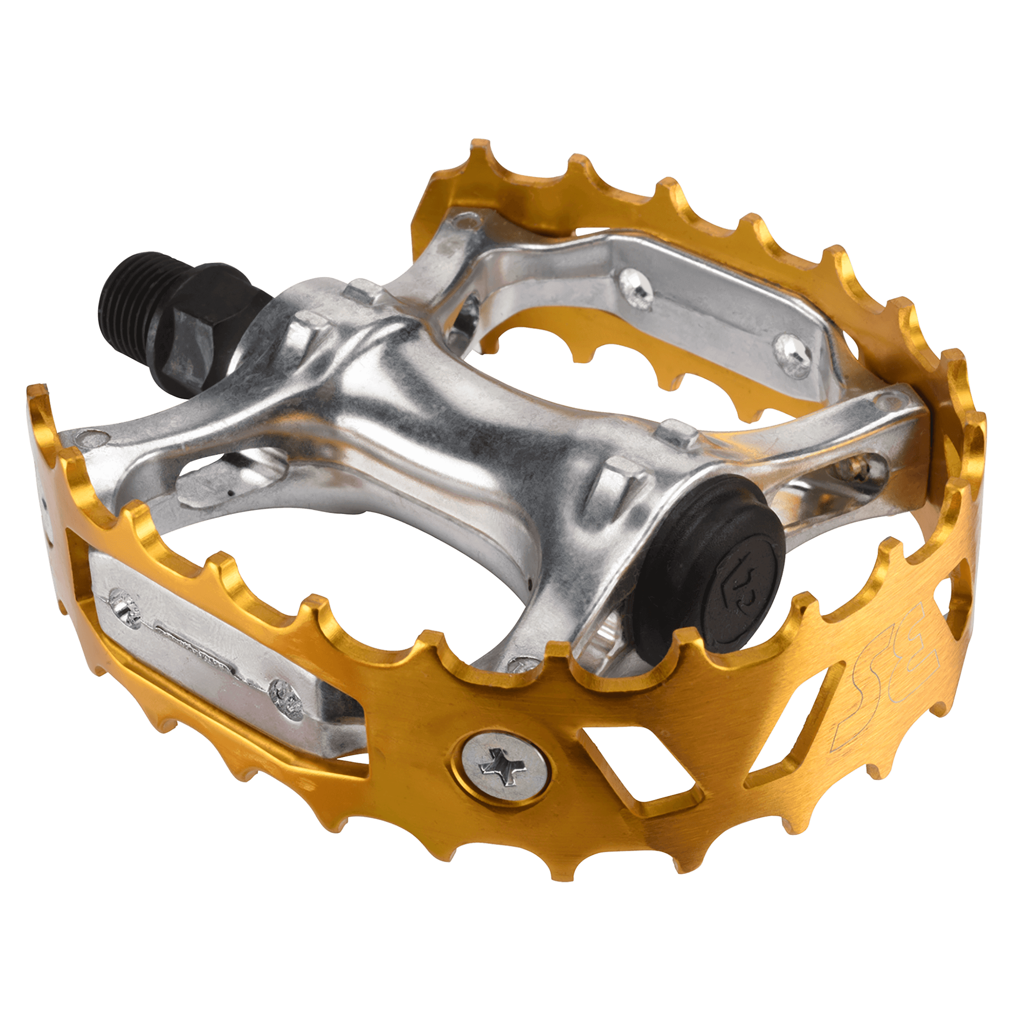 The SE Bear Trap pedals offer authentic Old School BMX styling, and a lot of grip and stability. The extra wide "bear trap" cages keep your feet exactly where they need to be.