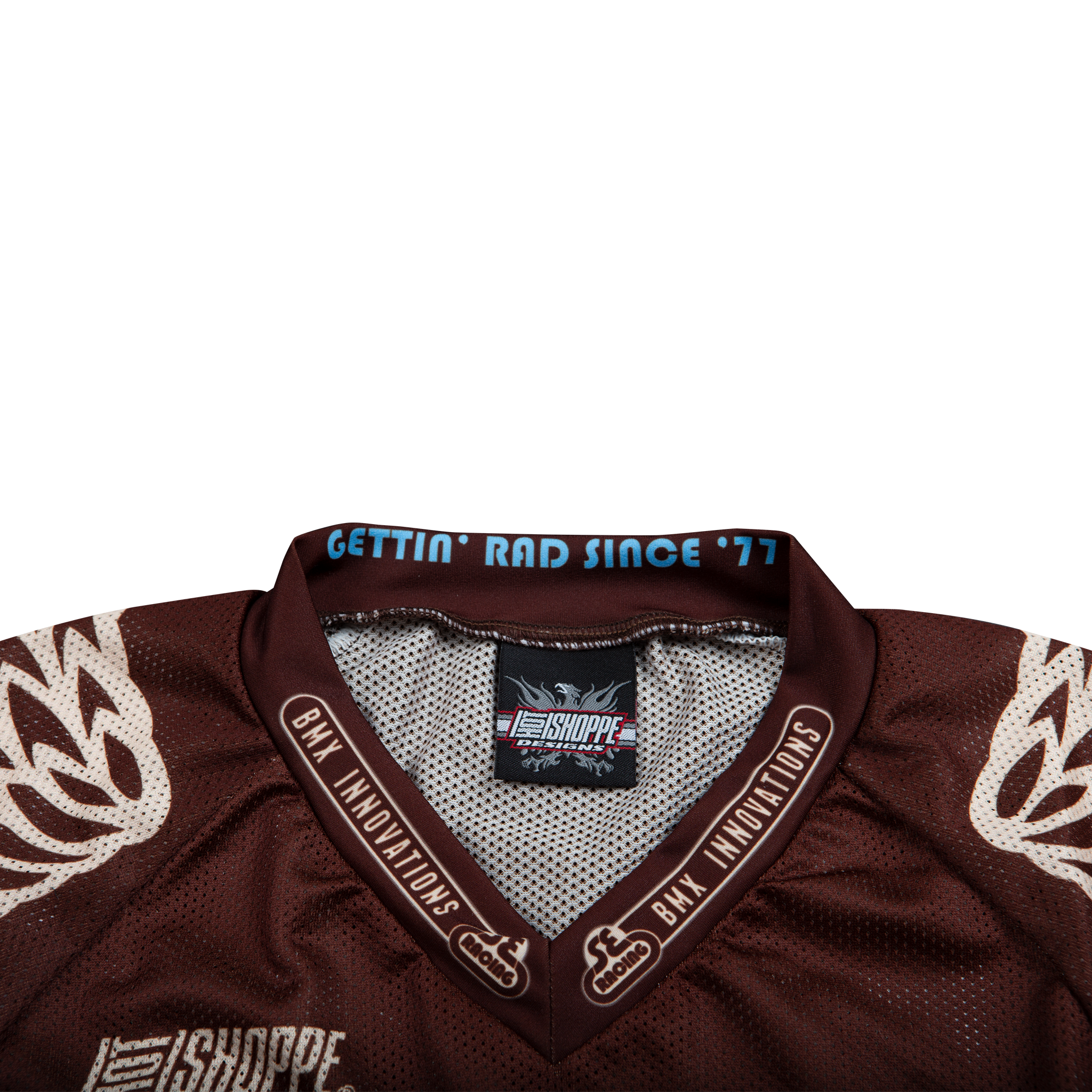 Get back to the roots of BMX with the SE Racing Retro jersey made in the USA by Hot Shoppe Designs. This breathable mesh jersey features traditional SE colors and logos. Let's go BMX racing!